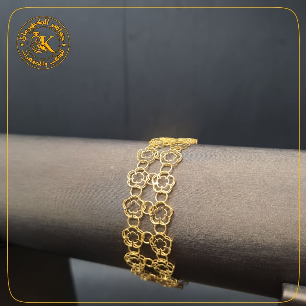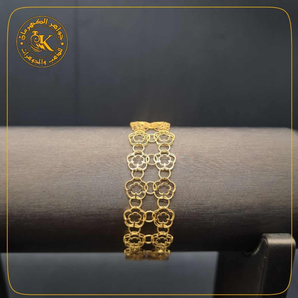 انثري سحر نجمك و حنان قلبك في كل مكان تذهبين إليه مع هذا السوار الانيق من الذهب . هو مصبوب من الذهب الأصفر عيار 21 قيراطًا وينضح بريقًا هائلاً. اسوارة لامعه تجعلها خيارًا مثاليًا للارتداء بمفردها.