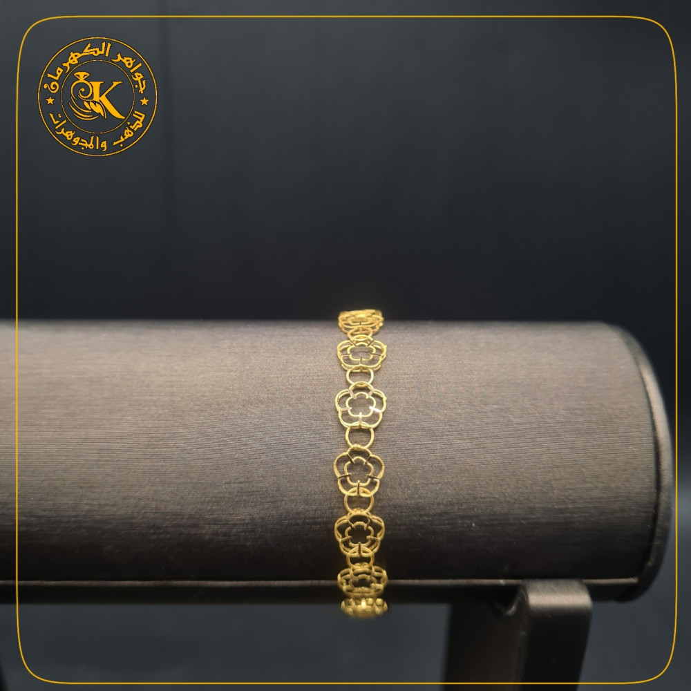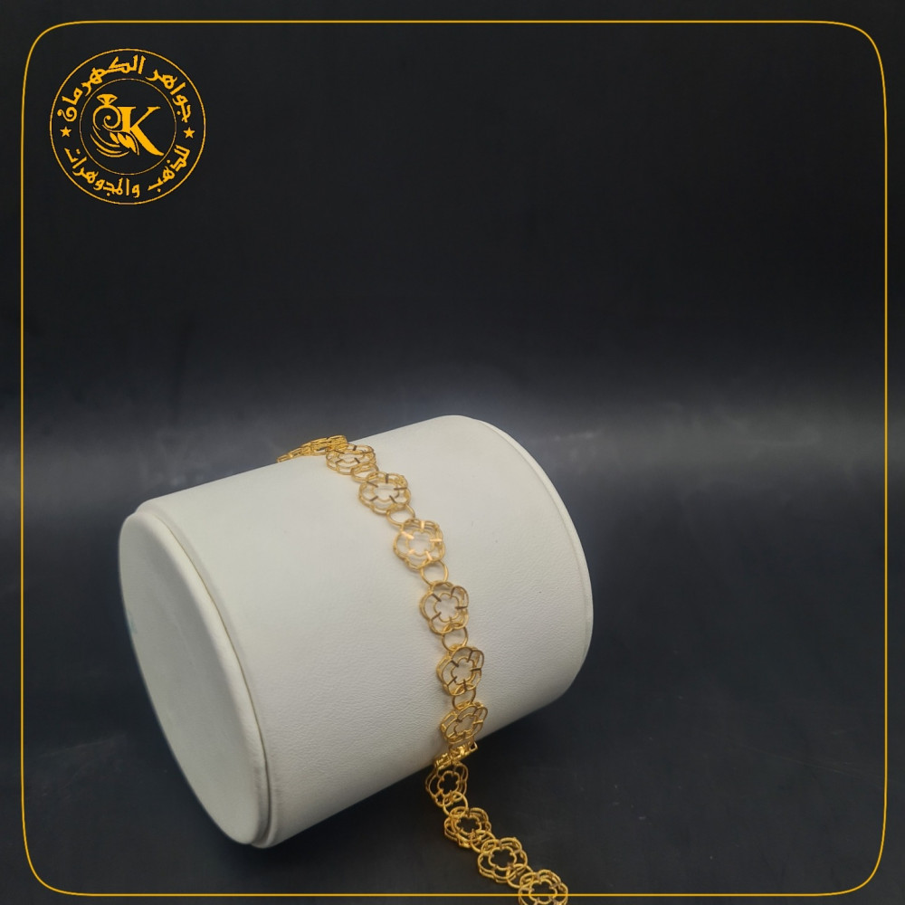 انثري سحر نجمك و حنان قلبك في كل مكان تذهبين إليه مع هذا السوار الانيق من الذهب . هو مصبوب من الذهب الأصفر عيار 21 قيراطًا وينضح بريقًا هائلاً. اسوارة لامعه تجعلها خيارًا مثاليًا للارتداء بمفردها.