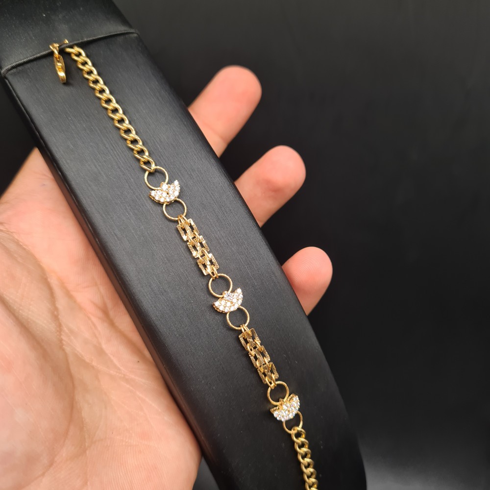 انثري سحر نجمك و حنان قلبك في كل مكان تذهبين إليه مع هذا السوار الانيق من الذهب . من الذهب الأصفر عيار 21 قيراطًا وينضح بريقًا هائلاً. اسوارة لامعه تجعلها خيارًا مثاليًا للارتداء بمفردها.