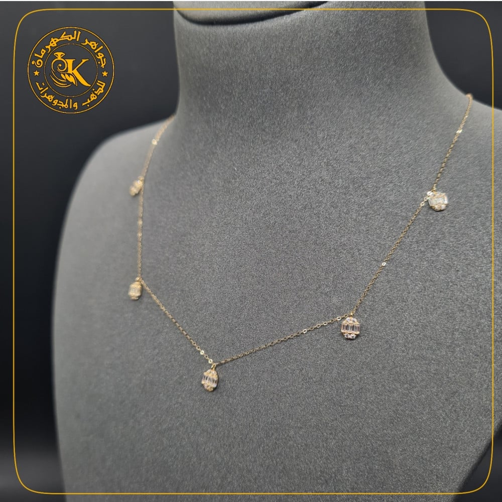 تألقي كعادتكِ في كل إطلالاتكِ عند ارتداءك هذه القلادة التي تعطيكي لمعاناً رائع، وذلك بفضل التصميم الدقيق المرصع المدبب لمظهر زاهي و المقطوع من قصة الباجيت الدائرية ، وتأتي مع سلسلة من الذهب الاصفر عيار 18 قيراط. قلادة مثالية من مجموعة مجوهرات جواهر الكهرمان لإطلالتك الجذابة.