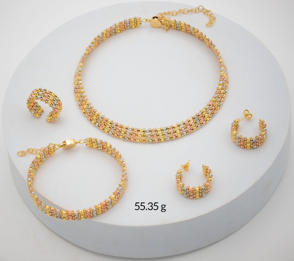 طقم الدوريكا المتميز باللون الذهبي و الأبيض و الروز ... وذلك بأيدي صائغين مهرة