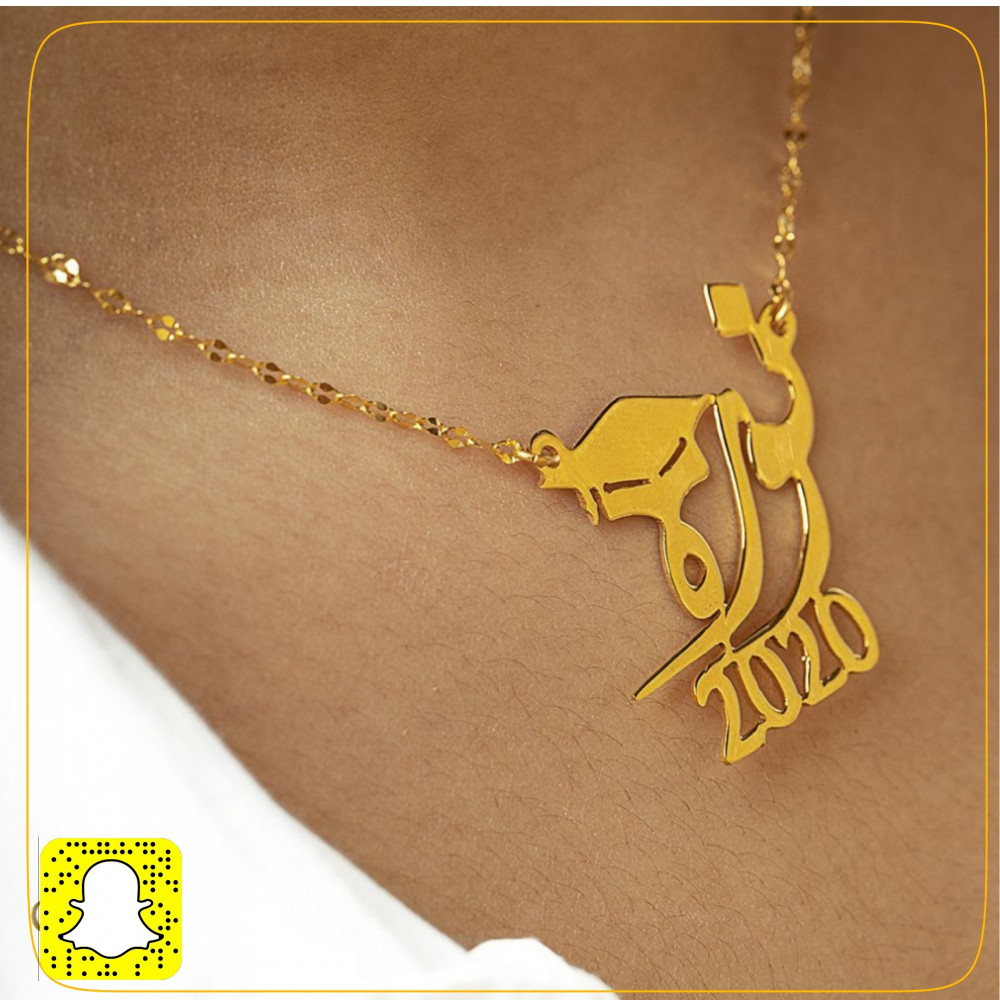 عقد بتصميم التخرج يجمع إسم المتخرجة مع سنة التخرج تتم صياغة الأسم حسب طلبك .. وذلك بأيدي صائغين مهرة