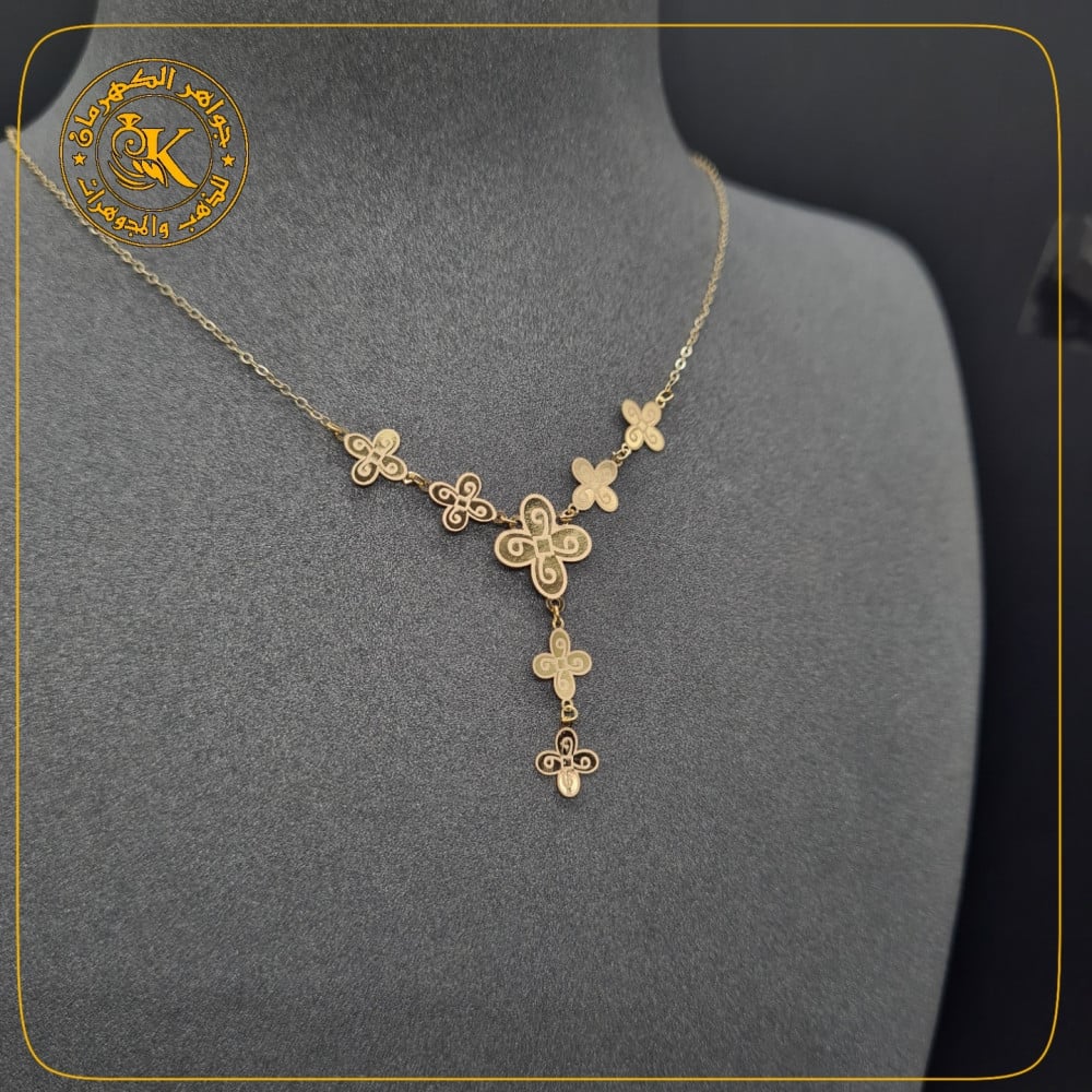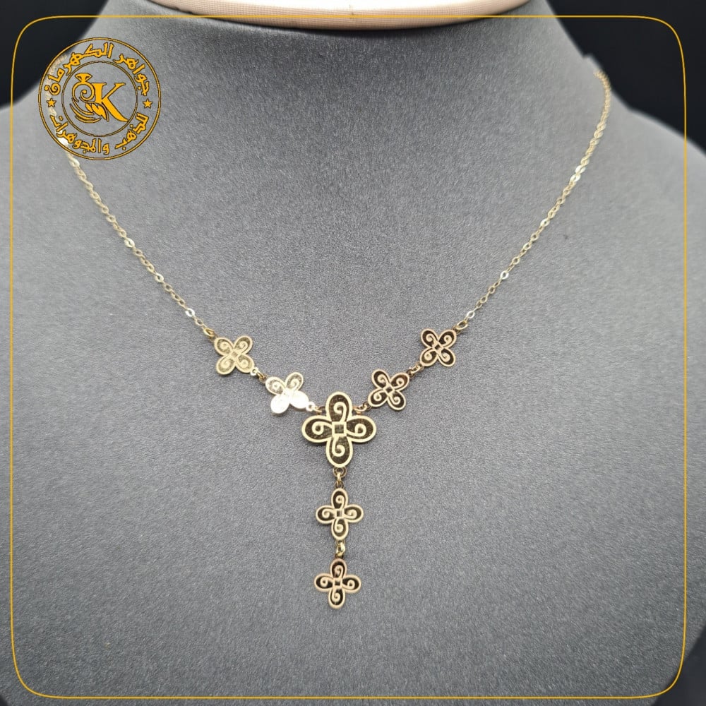 عقد بتصميم ورق الشجر بنقش الليزر ... وذلك بأيدي صائغين مهرة